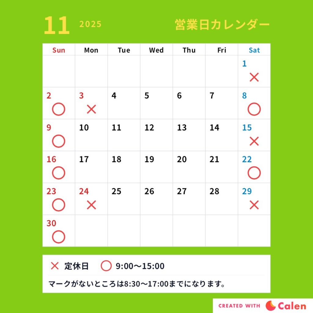 2025.10.31 2025年11月営業日カレンダー🍎 2025年11月営業日カレンダーです😊 ラ・フランス、りんごの販売中です。 りんごジュースもSALE中ですので是非お買い得になっておりますので お立ち寄りください!