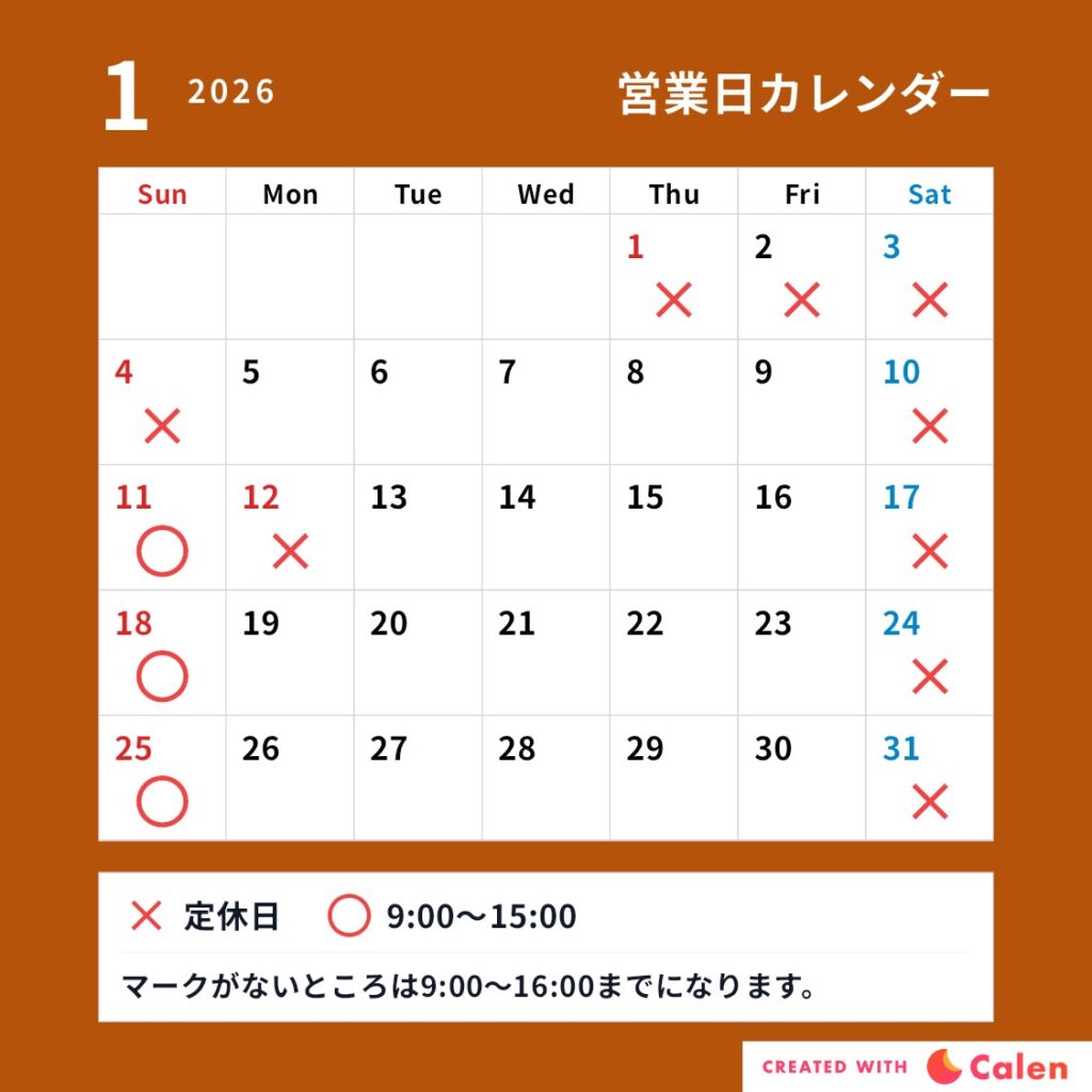 休業期間:2025年12月27日(土)〜 2026年1月4日(日)
